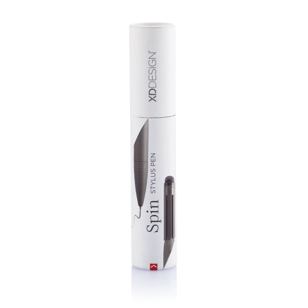 Spin is an aluminum 360° ergonomic stylus pen with 6 clips so you can attach it anywhere you want. The pen comes with a blue and black refill. Registered design®